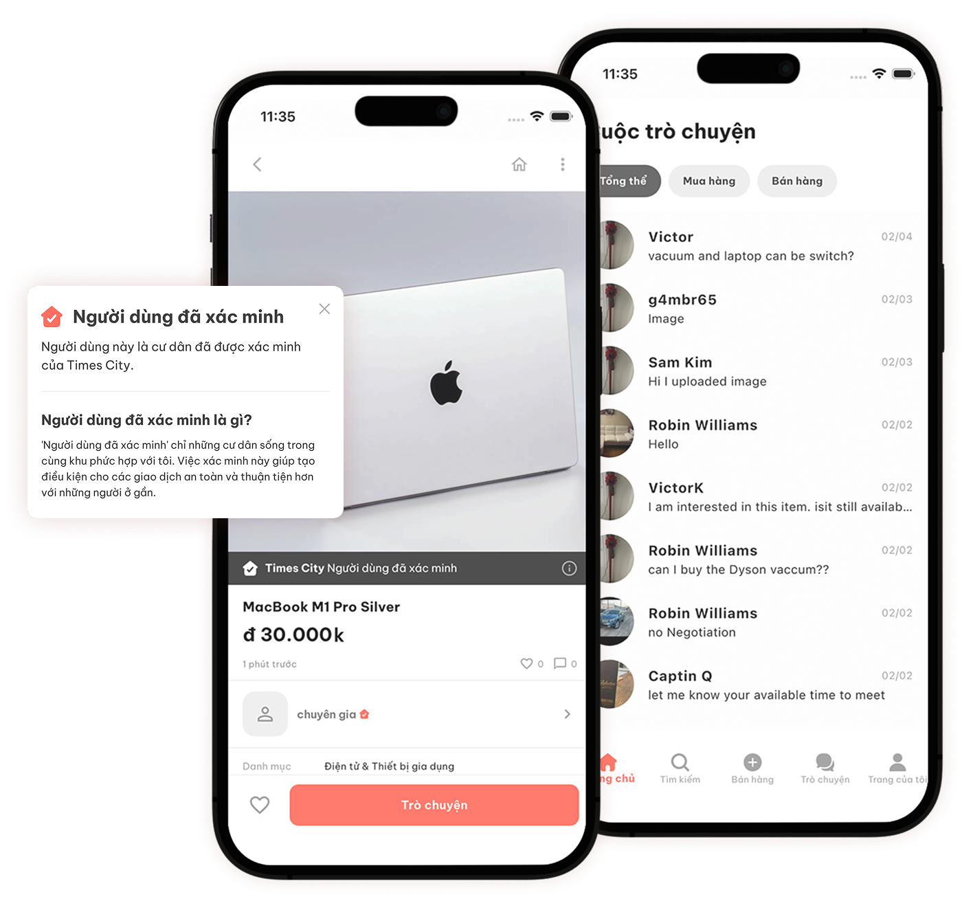 Người dùng đã xác minh, vị trí và cuộc trò chuyện an toàn giúp mỗi giao dịch trở nên an toàn và thân thiện.